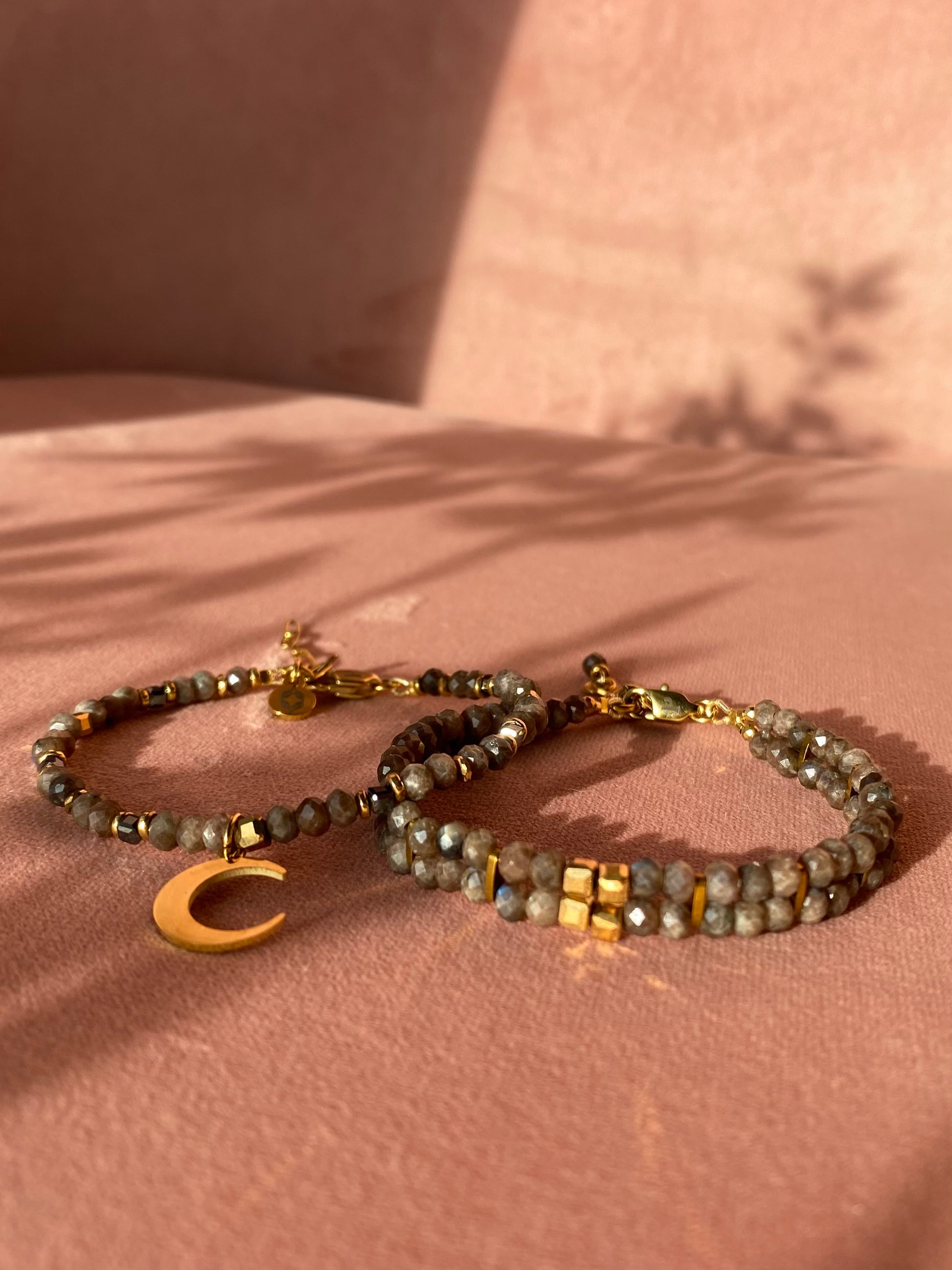 bransoletka z afrykańskiego labradorytu z półksiężycem