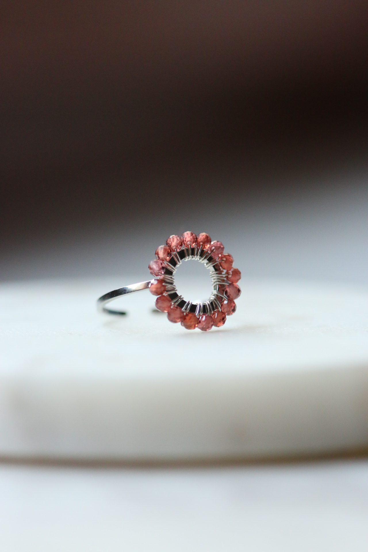 MIRKA – mini pleciony pierścionek z naturalnego almandynu.