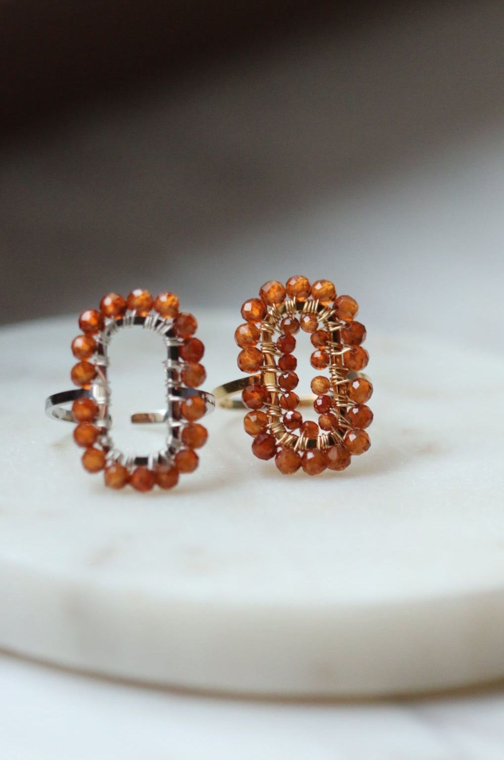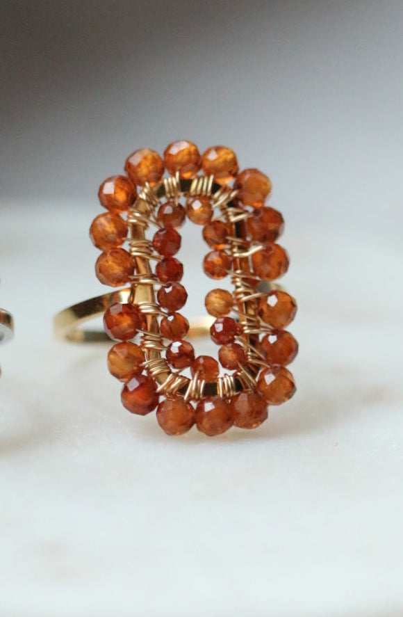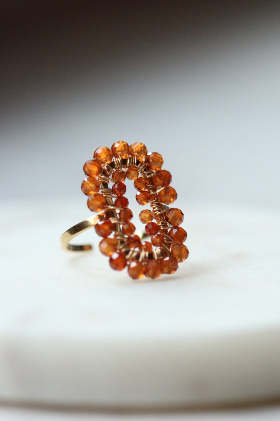 SOPHIE maxi – pleciony pierścionek z naturalnego spessartynu (mandarynkowego granatu)