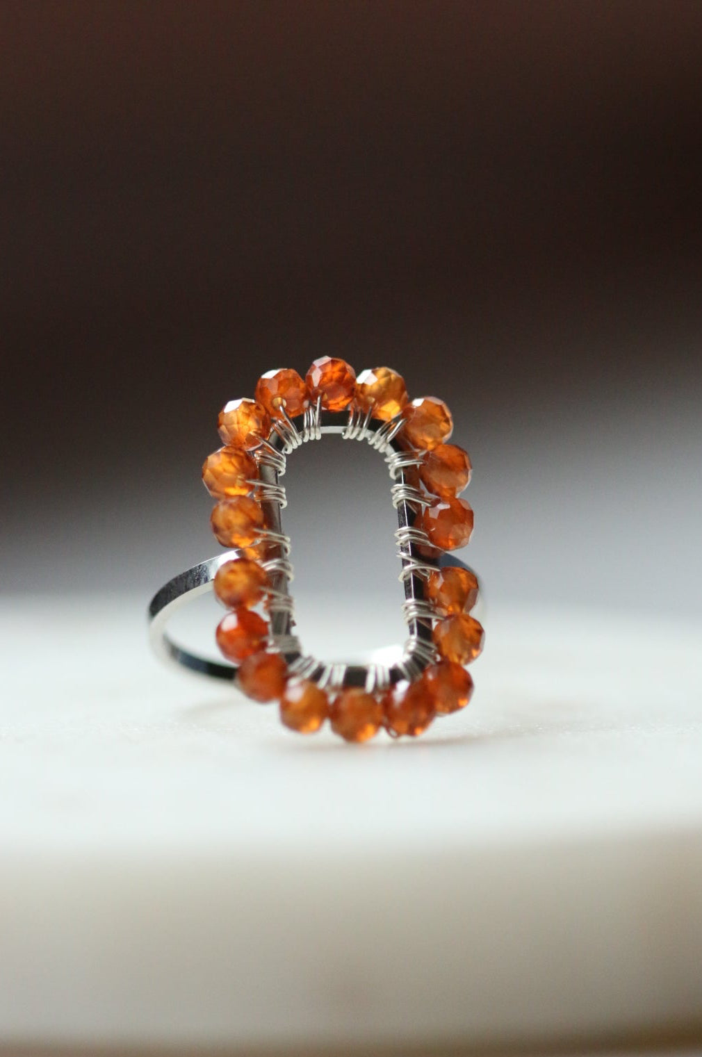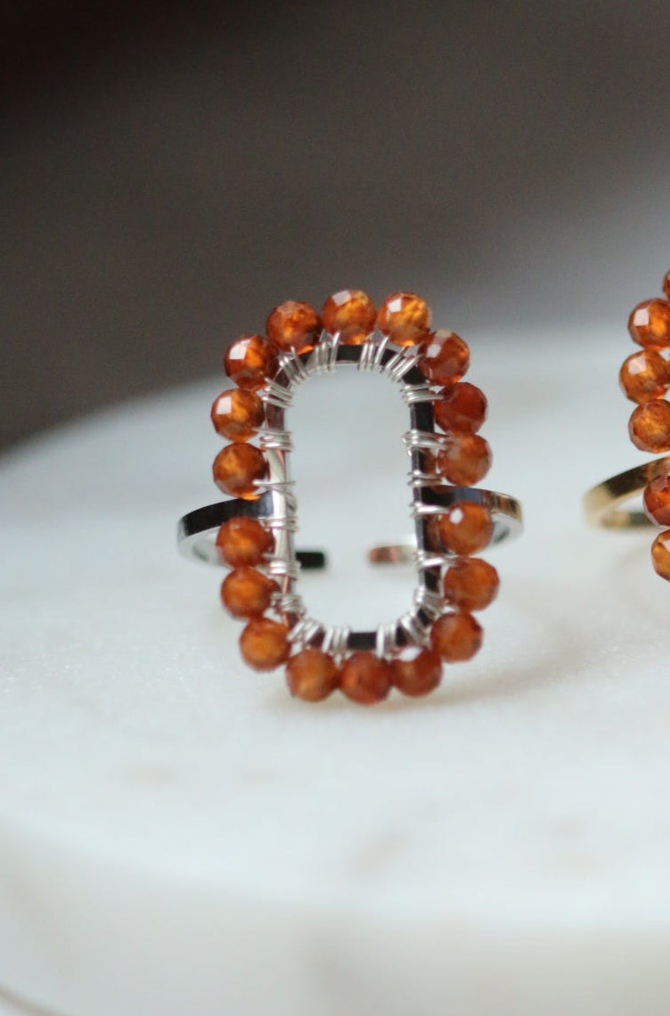 SOPHIE – pleciony pierścionek z naturalnego spessartynu (mandarynkowego granatu)