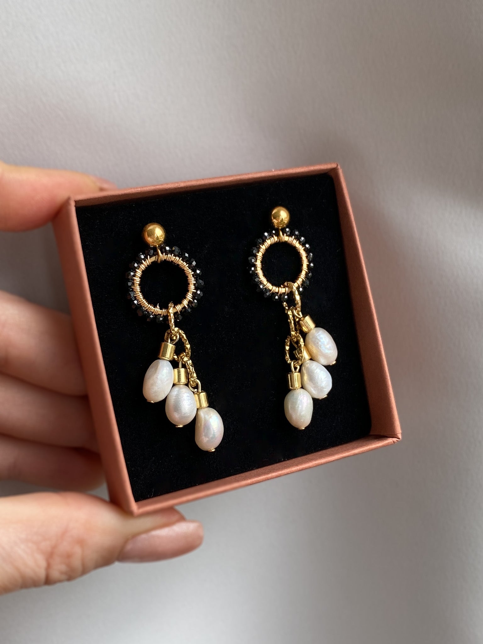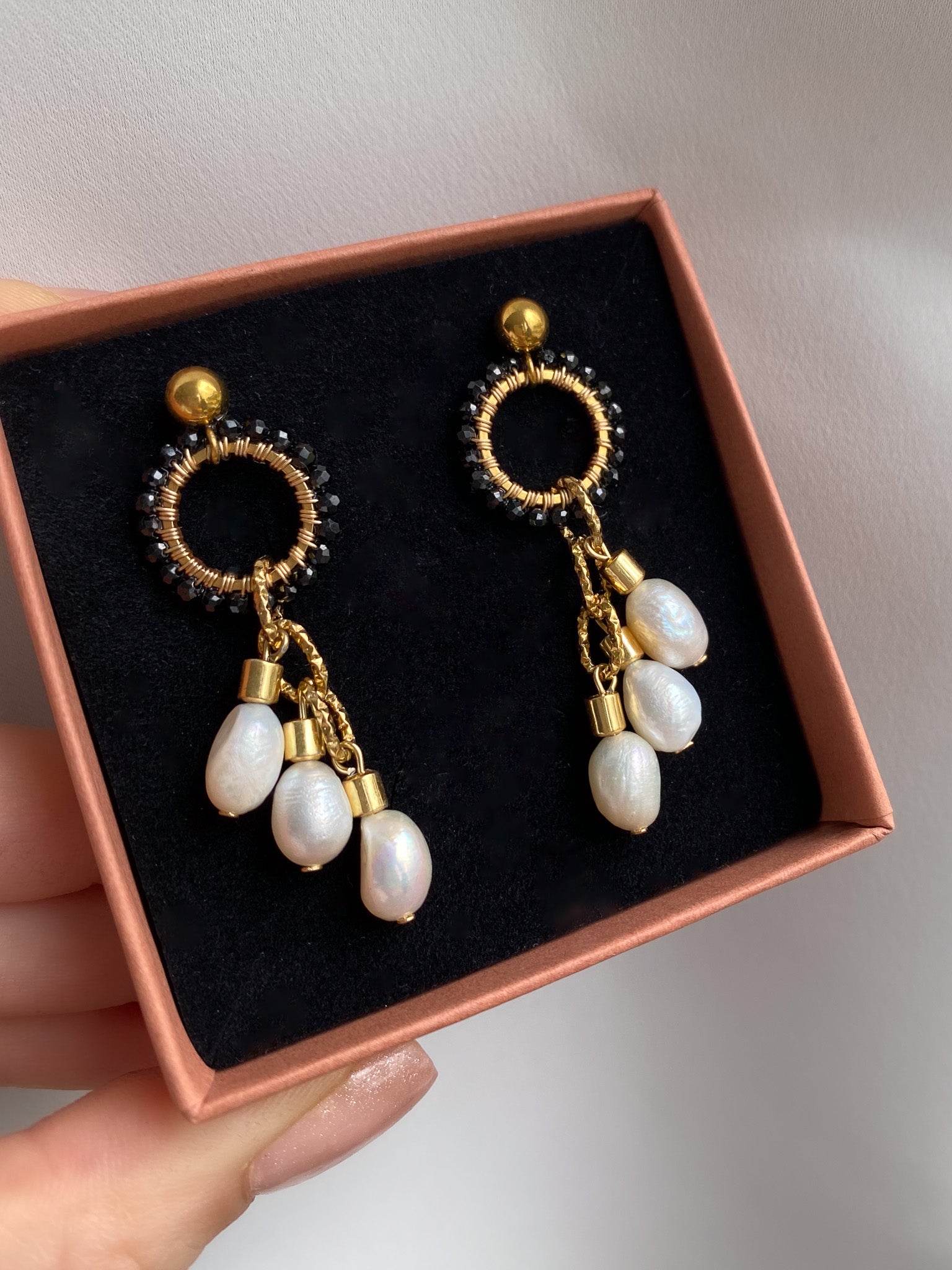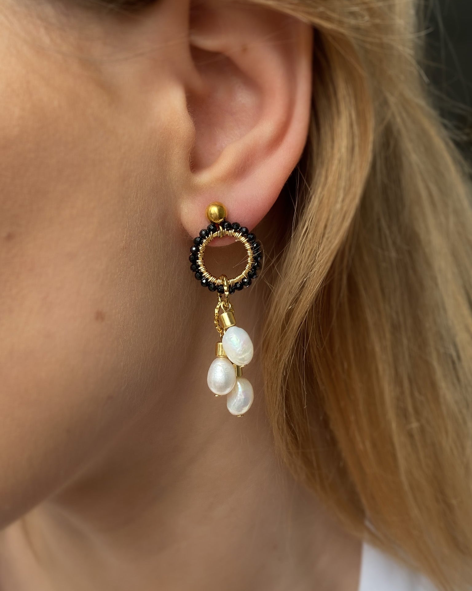 princess tiziana • plecione kolczyki z czarego turmalinu z perłami